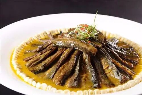 2、菜籽油加热后放入鳝鱼煸出香味,加入姜片、蒜片、剁辣椒、盐、味精等,芦笋放入锅肉一起焖。